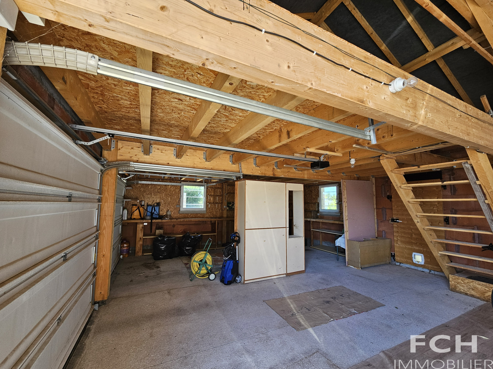 Une très belle dépendance de 64 m² à l’arrière accueille vos voitures et un véhicule haut type camping-car ou fourgon, un espace atelier, et une grande capacité de stockage en mezzanine.
