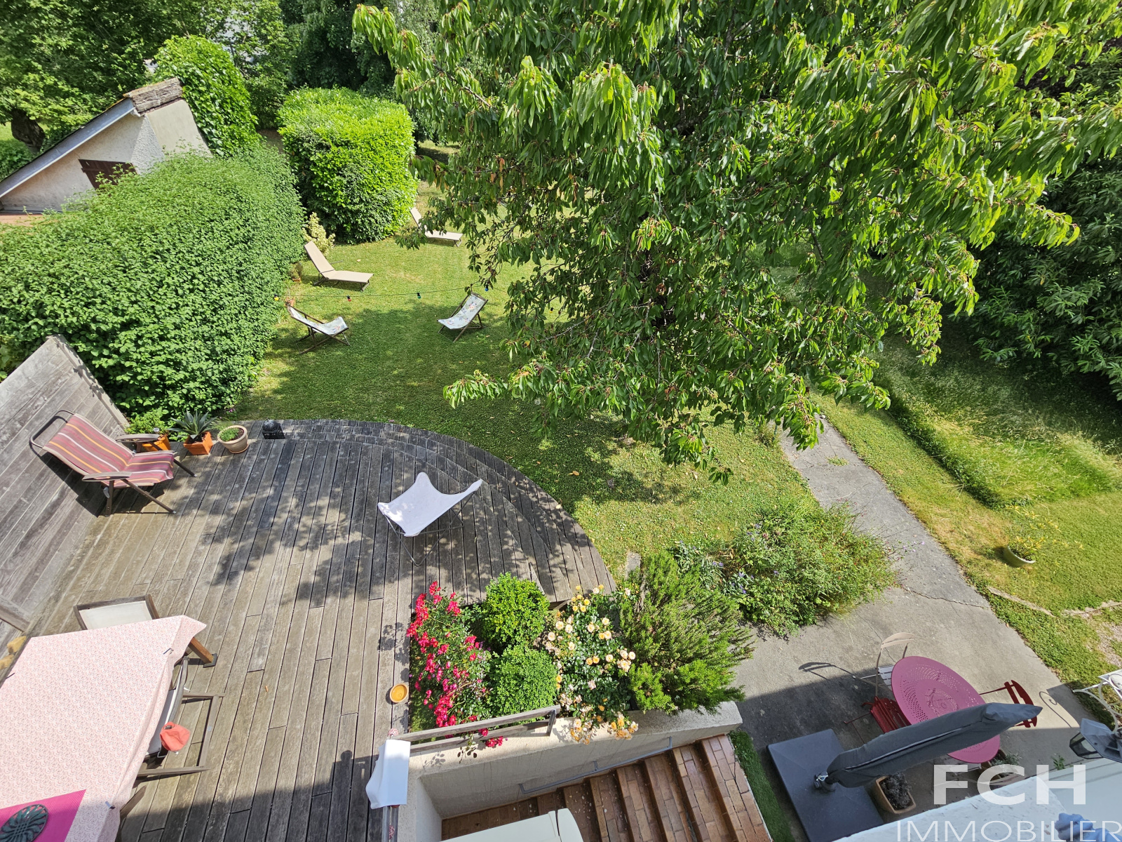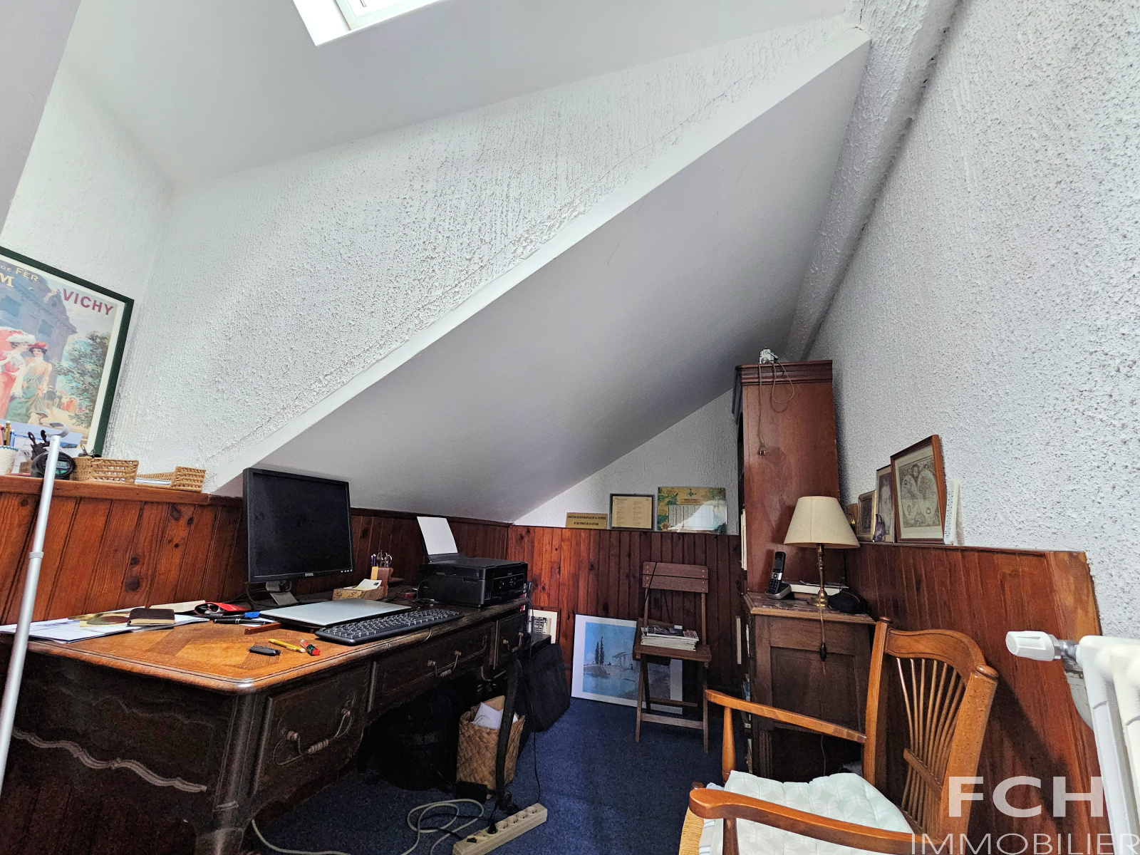 VENDU - COUP DE COEUR ! - A 5 min de Vichy, idéalement située dans une rue résidentielle de Bellerive avec commodités accessibles à pied, ravissante villa de charme 1930 rénovée avec goût et présentée en excellent état général. Hall d'entrée, salon/salle à manger avec cheminée, ouvrant sur agréable terrasse à l'arrière, cuisine équipée attenante, WC avec lave-mains. En demi-palier, bureau avec placard (possibilité dressing), grande chambre, salle d'eau avec WC. A l'étage, palier avec placard, deux chambres avec placard et cabinet de toilette (dont une avec WC), petite pièce idéale bureau ou dressing, grenier pour rangement. Le sous-sol comprend une pièce de 30 m² avec accès jardin, réserve bois, chaufferie/buanderie (chaudière à condensation De Dietrich), atelier. Garage attenant avec porte motorisée, possibilité de garer plusieurs véhicules dans l'enceinte de la propriété.Très joli jardin clos, fleuri et arboré sur une parcelle d'environ 800 m².