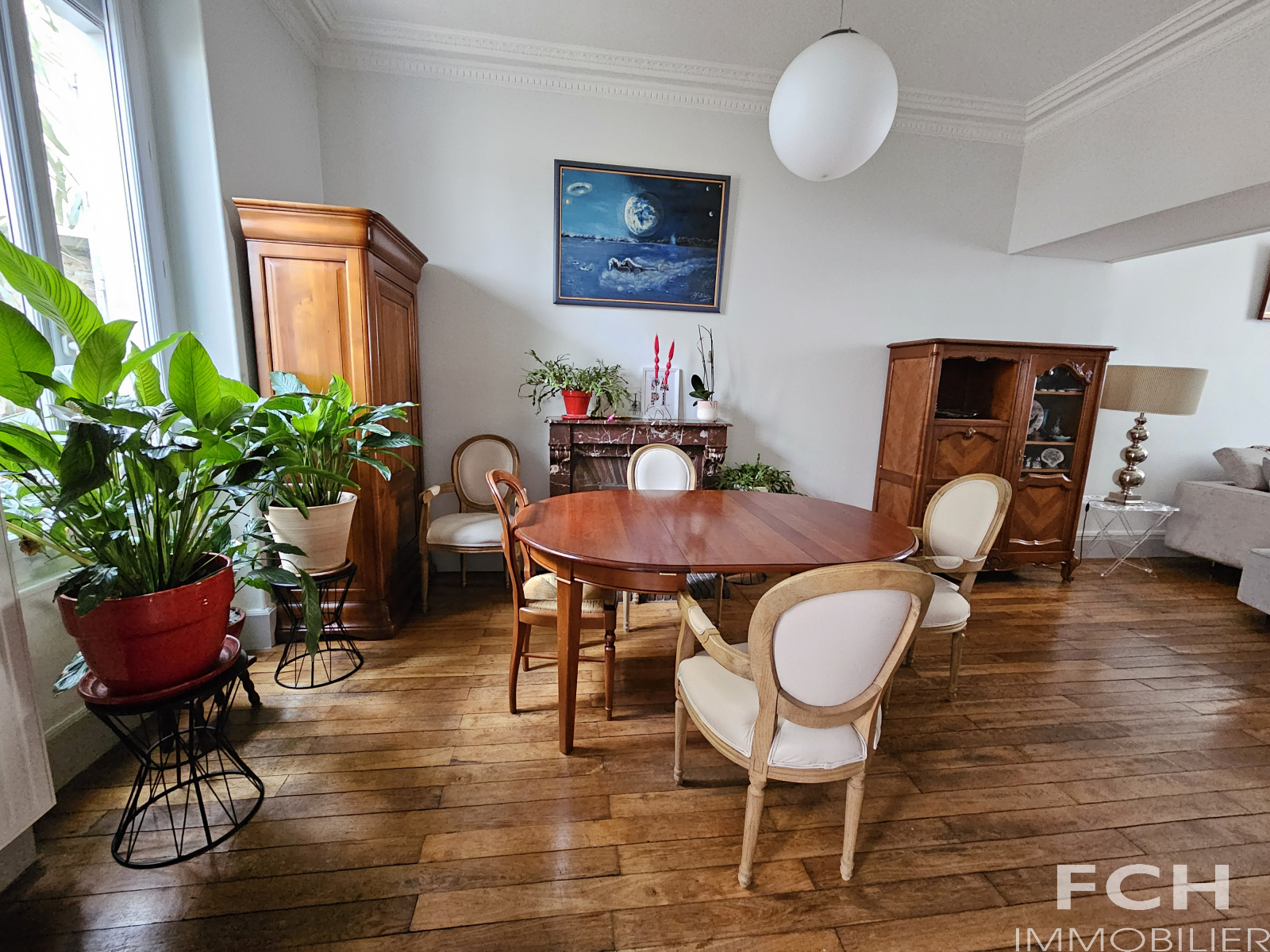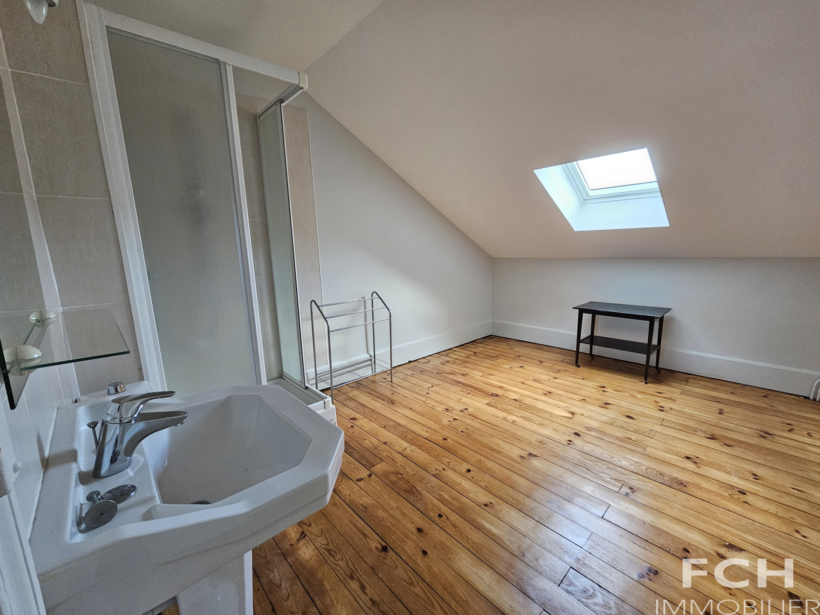 Au 2ème étage mansardé, grande chambre 23 m² au sol avec placard, petite chambre (ou dressing) 11 m² au sol, salle d’eau avec WC. Au sous-sol : grande pièce carrelée à usage de buanderie/chaufferie, cave à vin, 2ème cave. Toiture et isolation combles neuves, double vitrage, chauffage central gaz, tout-à-l’égout conforme, DPE en D. Possibilité de reprendre la location du garage.