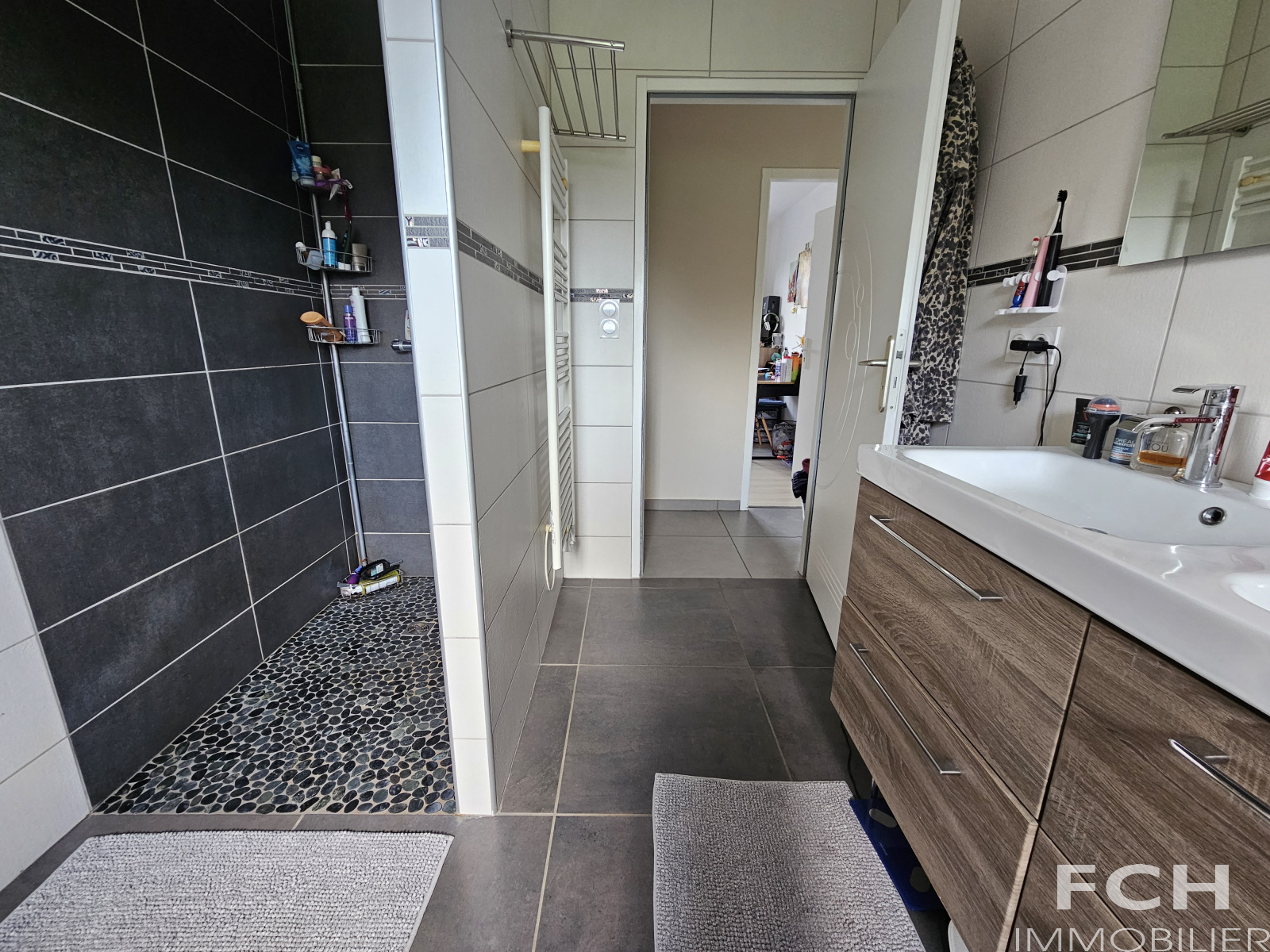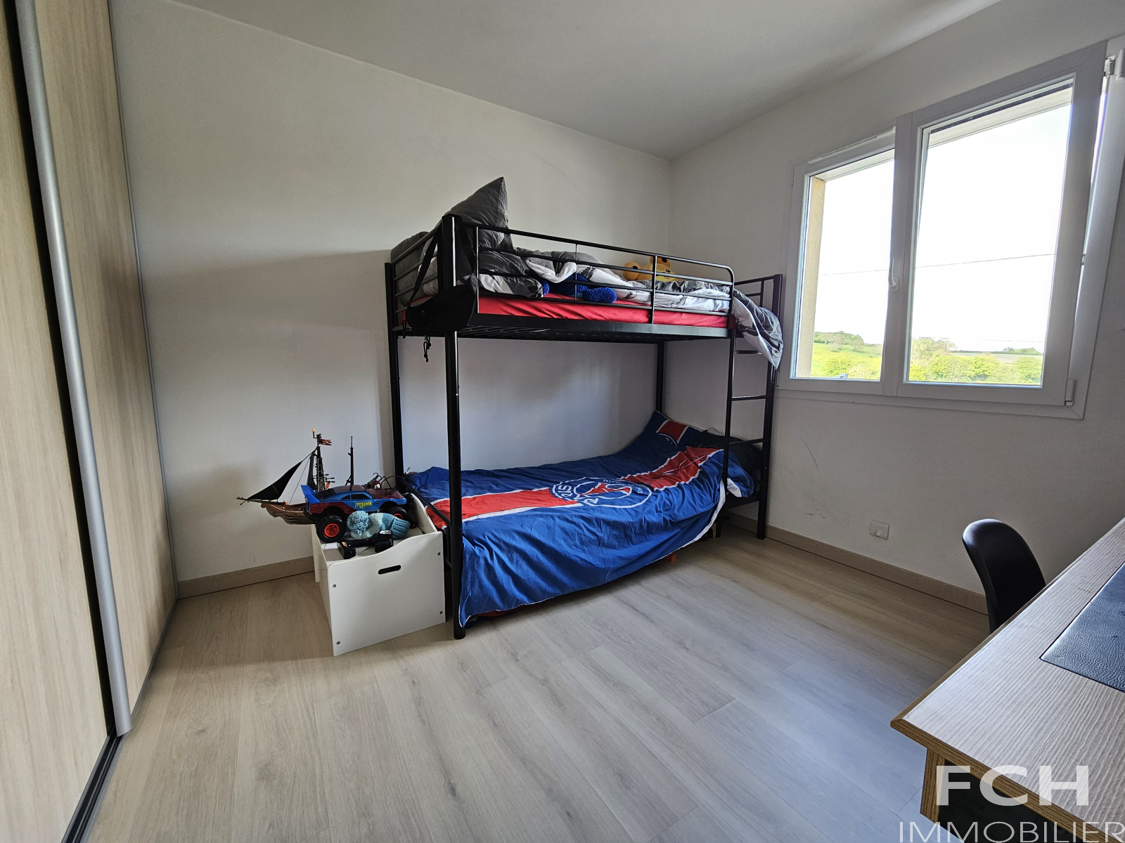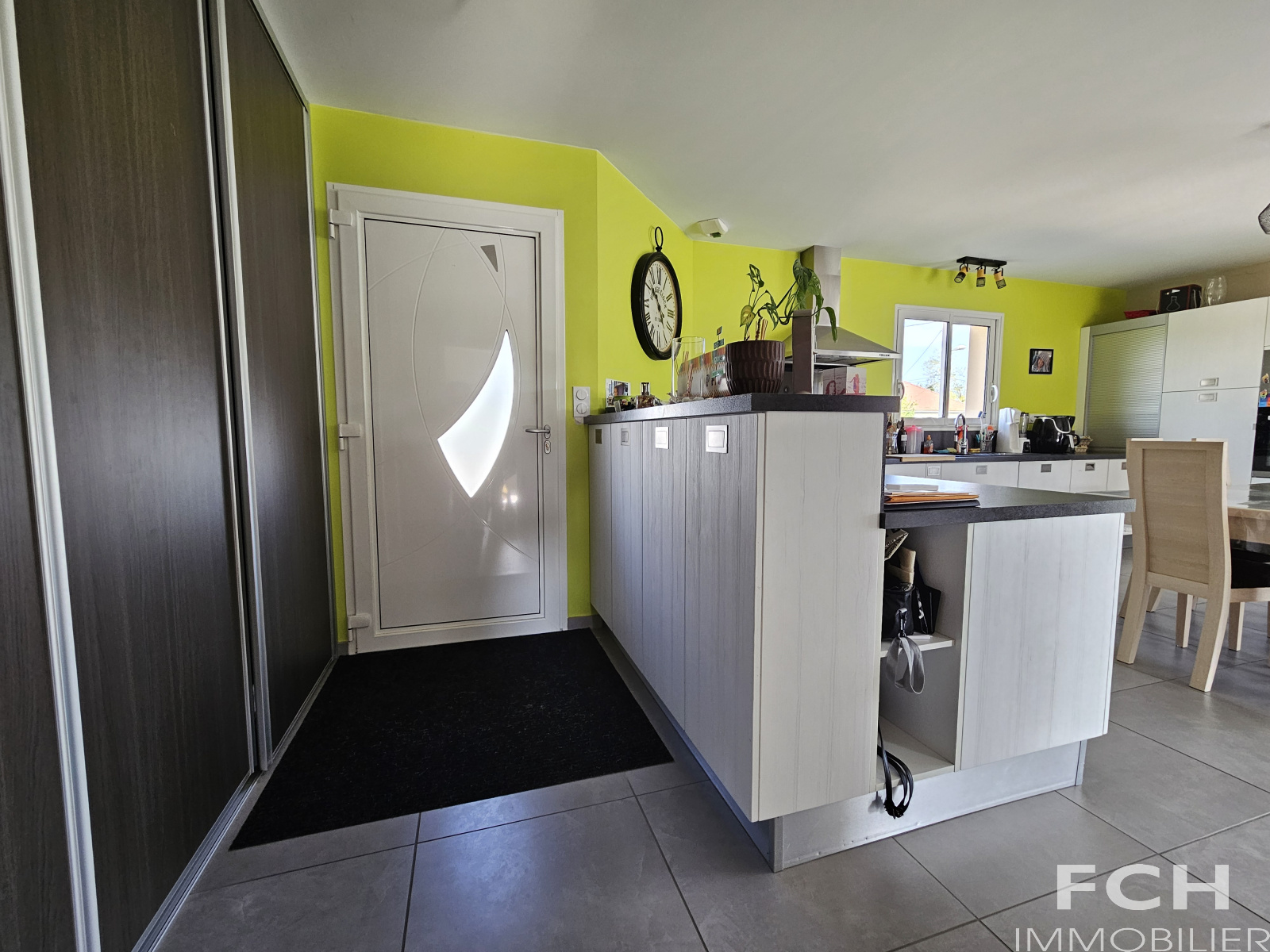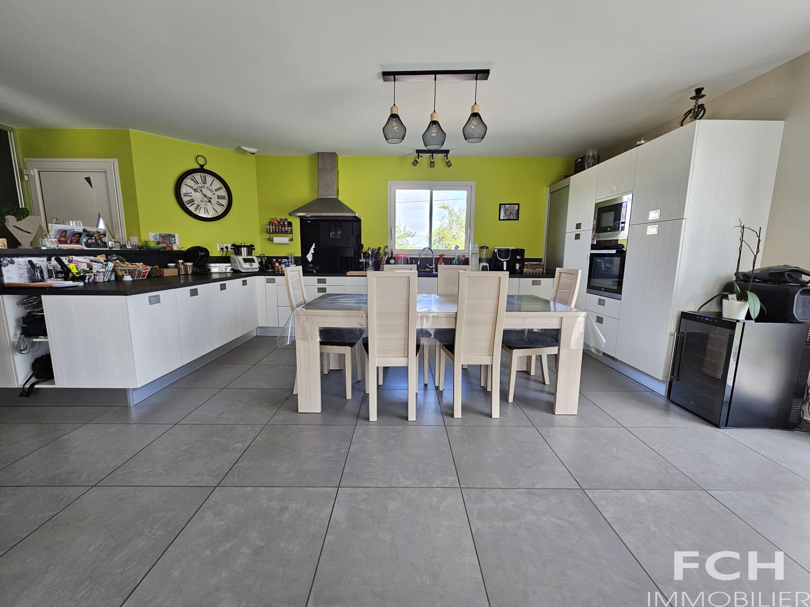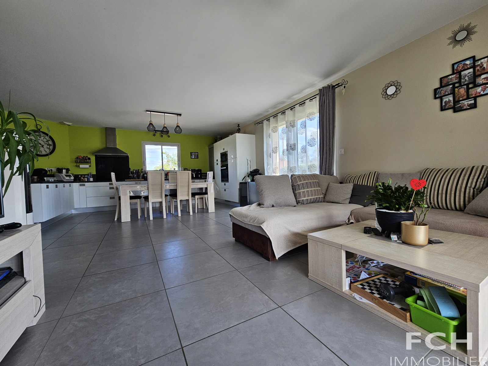 Fonctionnelle et lumineuse, dotée d’une surface habitable de 112 m², cette maison basse consommation aux prestations de confort comprend : entrée avec grand vestiaire et placards, cuisine équipée ouverte sur séjour-salle à manger avec poêle à granulés (surface de la pièce à vivre 48 m²), baies vitrées avec accès terrasse. Dégagement desservant bureau, chambre parentale avec dressing, deux autres chambres équipées de placards, salle de bains complète (double vasque, bain, douche), WC séparé.