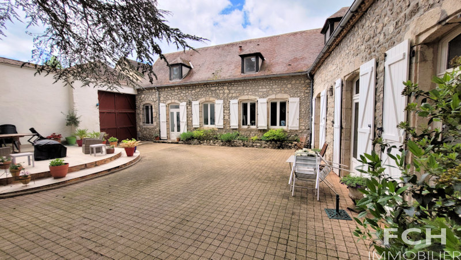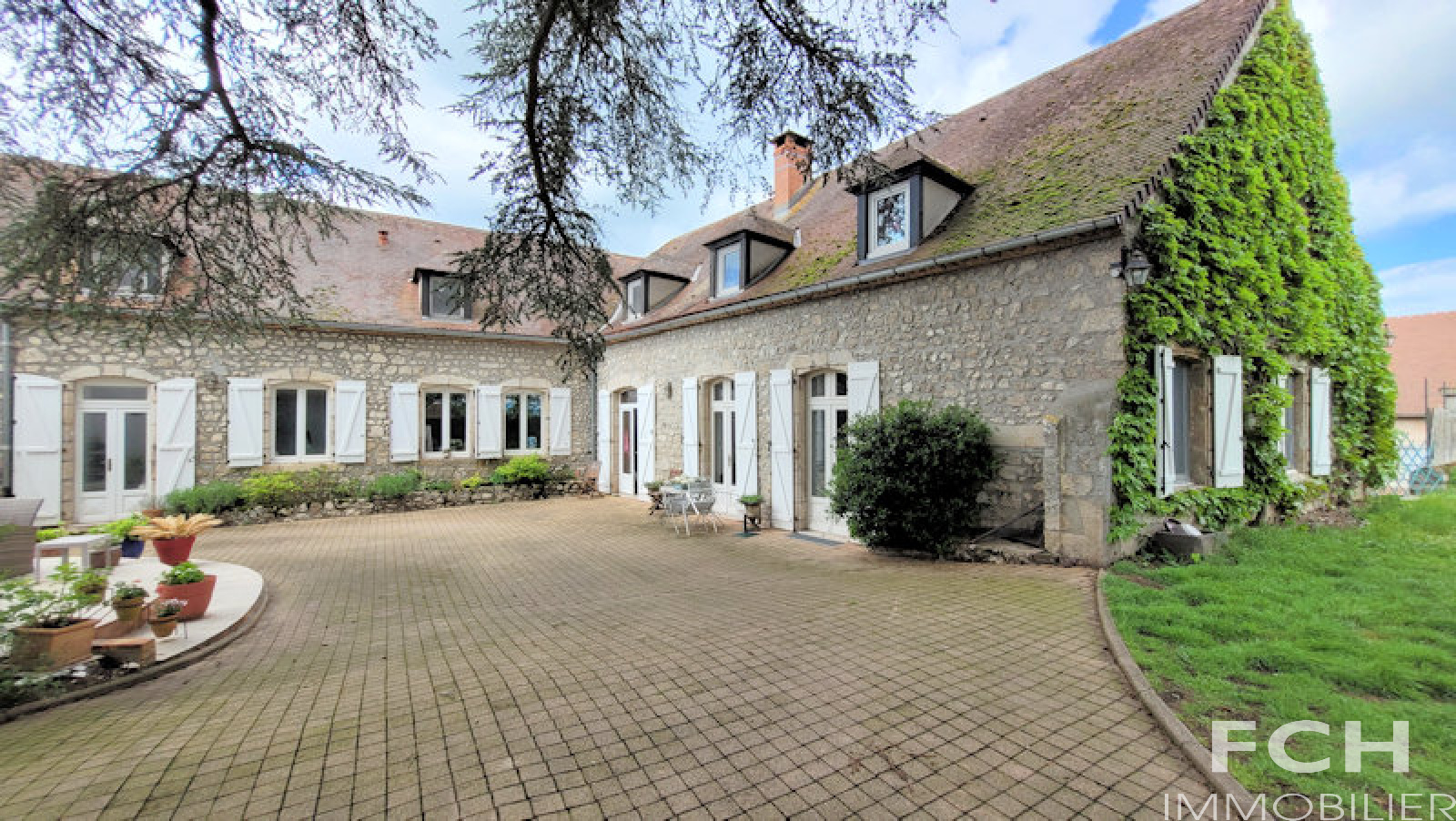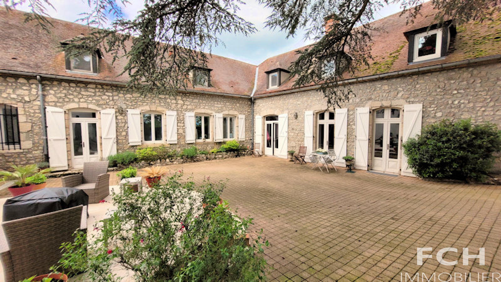 VENDU - COUP DE COEUR !!! Magnifique propriété en pierre, rénovation récente, offrant de beaux volumes, située au calme dans un village à 20 minutes de Vichy. Le rez-de-chaussée de 156 m² comprend : entrée, séjour/salle à manger lumineux, cuisine équipée et dinatoire de 50 m² avec cheminée en pierre, accès terrasse et jardin, cuisine d'été, chambre, salle d'eau (douche à l'italienne) avec WC et grand placard. A l'étage : la mezzanine mène côté gauche à l'appartement indépendant avec chambre, salon avec cuisine équipée, salle de bain et WC ; l'aile côté droit dessert deux autres chambres, WC, salle de bain et suite parentale avec grande chambre et salle d'eau attenante. Agréable jardin arboré, puits, cave voûtée d'environ 40 m², deux terrasses et une grande dépendance avec garage et atelier. Murs en pierre de taille isolé, combles isolés, menuiserie bois double vitrage, chaudière Atlantic gaz à condensation récente.