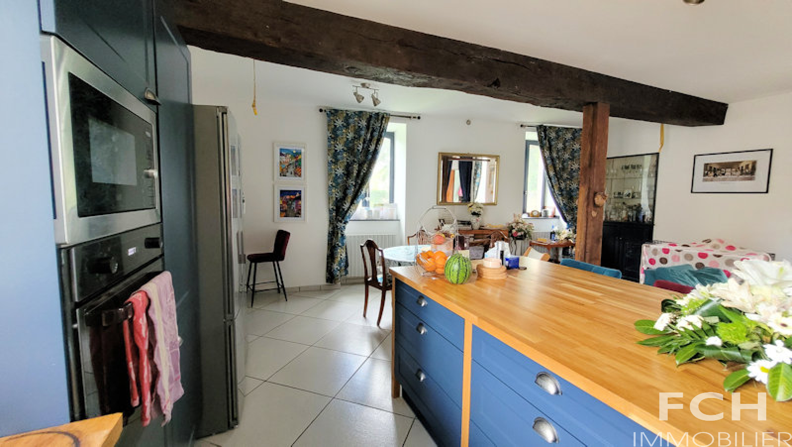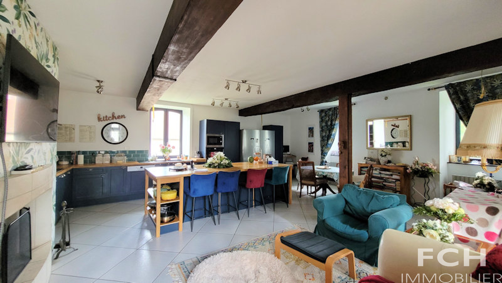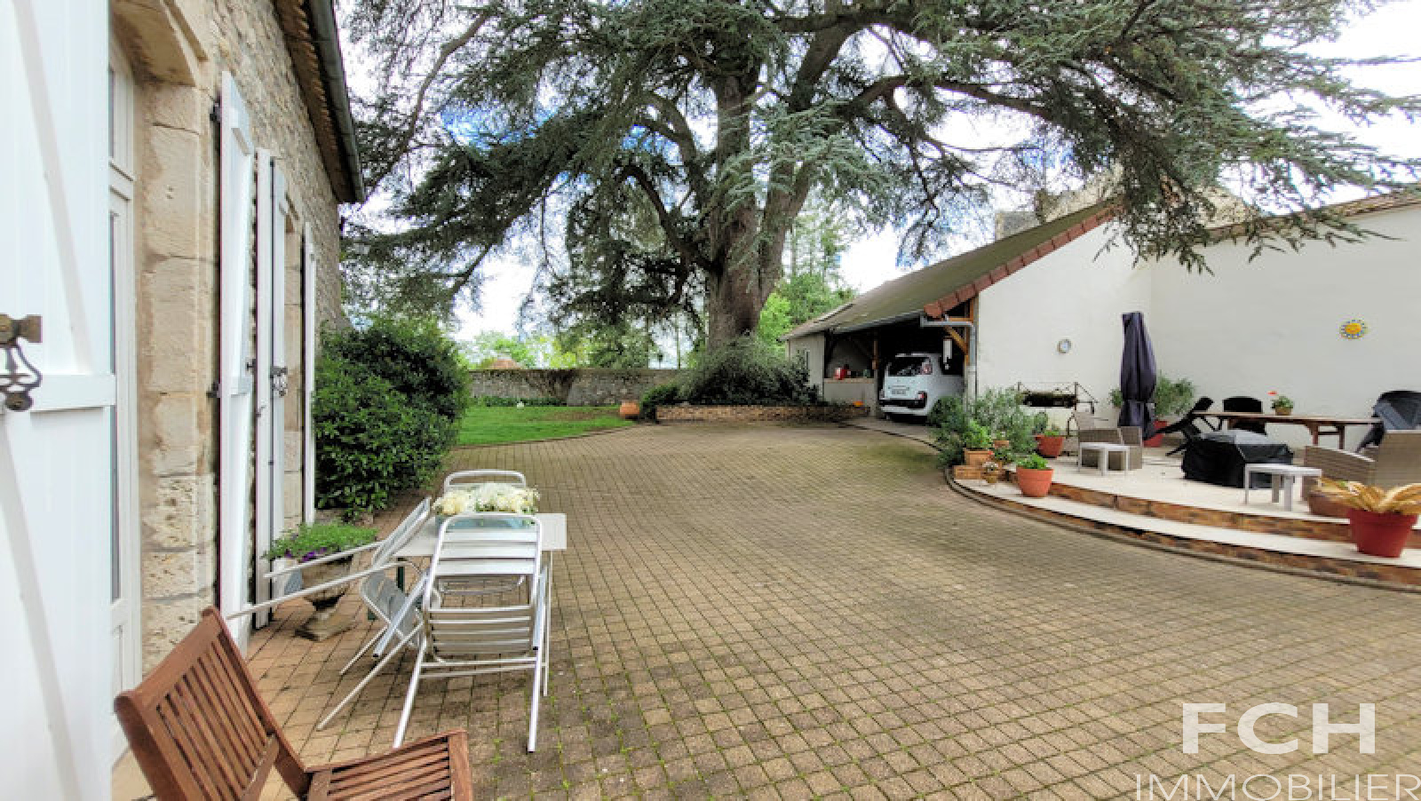 VENDU - COUP DE COEUR !!! Magnifique propriété en pierre, rénovation récente, offrant de beaux volumes, située au calme dans un village à 20 minutes de Vichy. Le rez-de-chaussée de 156 m² comprend : entrée, séjour/salle à manger lumineux, cuisine équipée et dinatoire de 50 m² avec cheminée en pierre, accès terrasse et jardin, cuisine d'été, chambre, salle d'eau (douche à l'italienne) avec WC et grand placard. A l'étage : la mezzanine mène côté gauche à l'appartement indépendant avec chambre, salon avec cuisine équipée, salle de bain et WC ; l'aile côté droit dessert deux autres chambres, WC, salle de bain et suite parentale avec grande chambre et salle d'eau attenante. Agréable jardin arboré, puits, cave voûtée d'environ 40 m², deux terrasses et une grande dépendance avec garage et atelier. Murs en pierre de taille isolé, combles isolés, menuiserie bois double vitrage, chaudière Atlantic gaz à condensation récente.