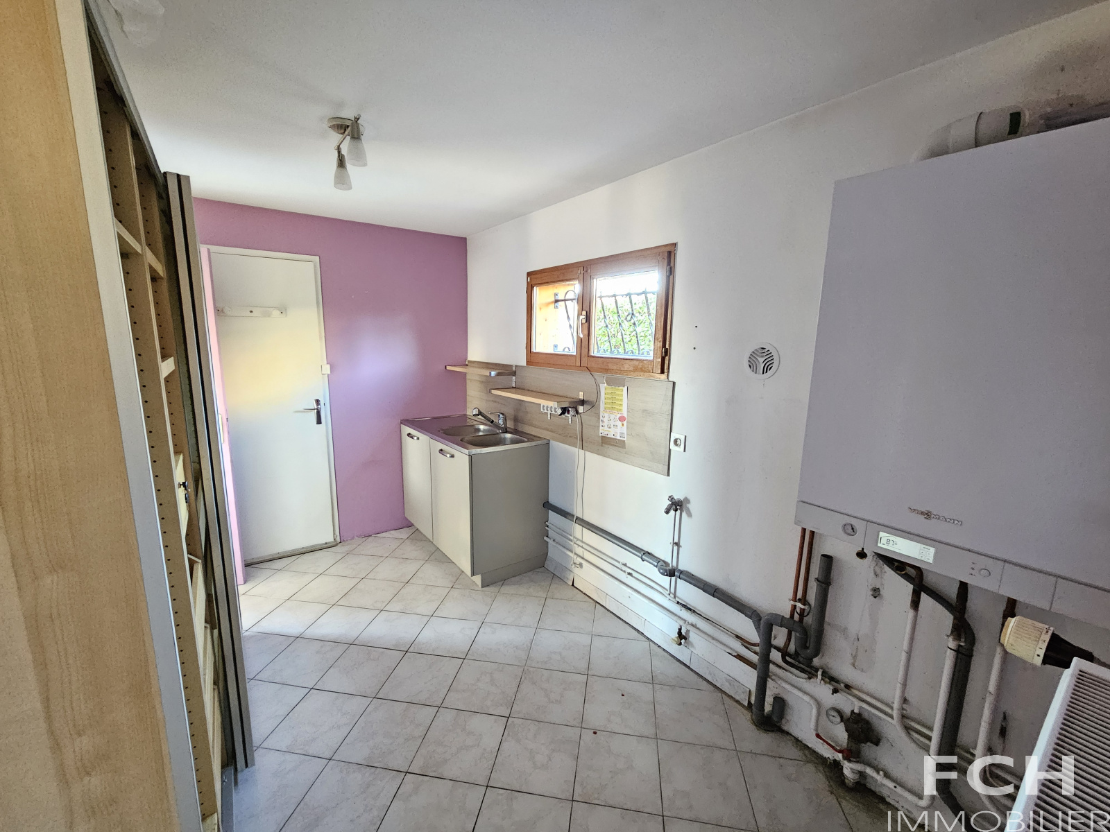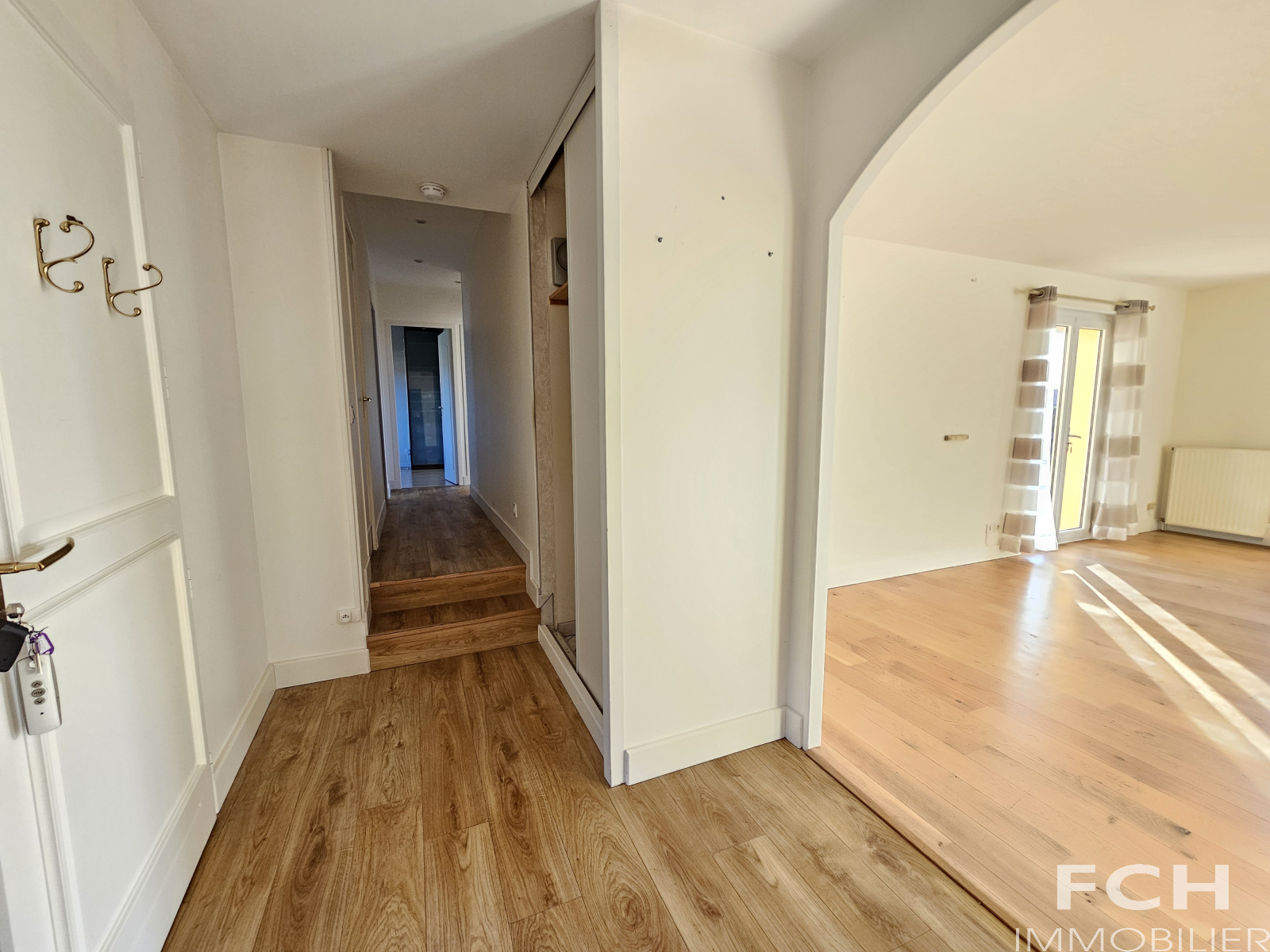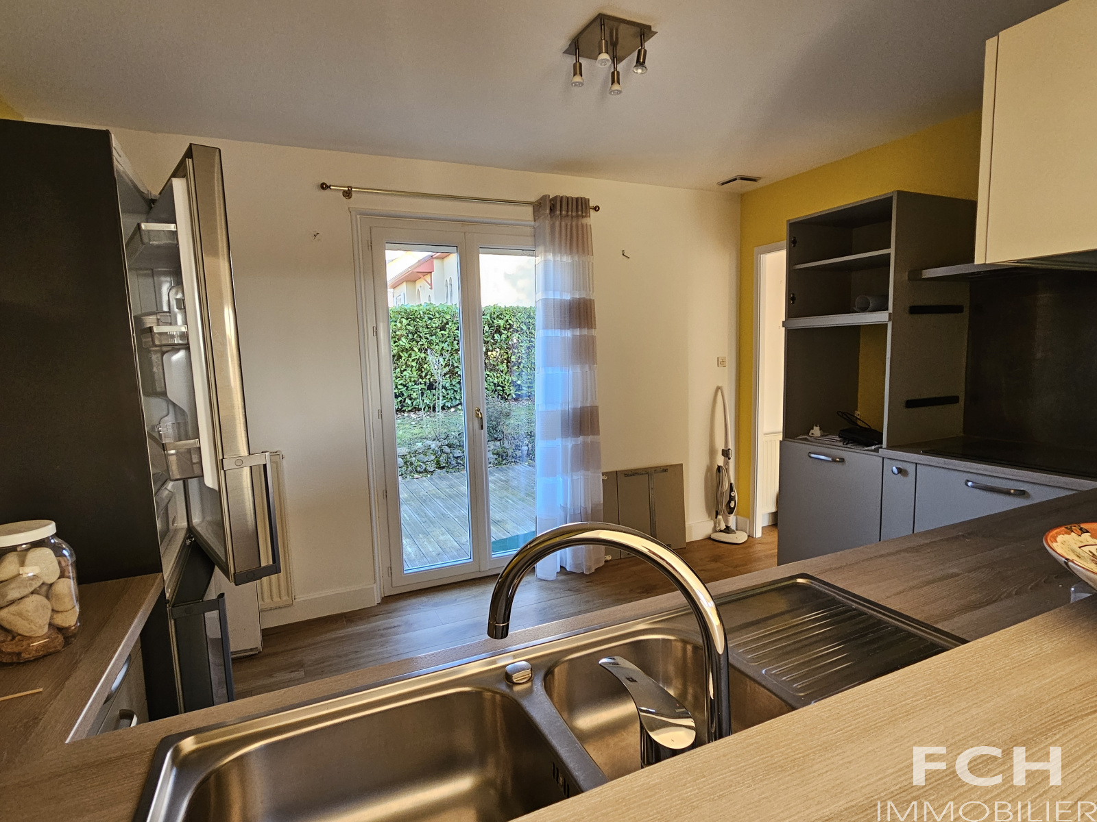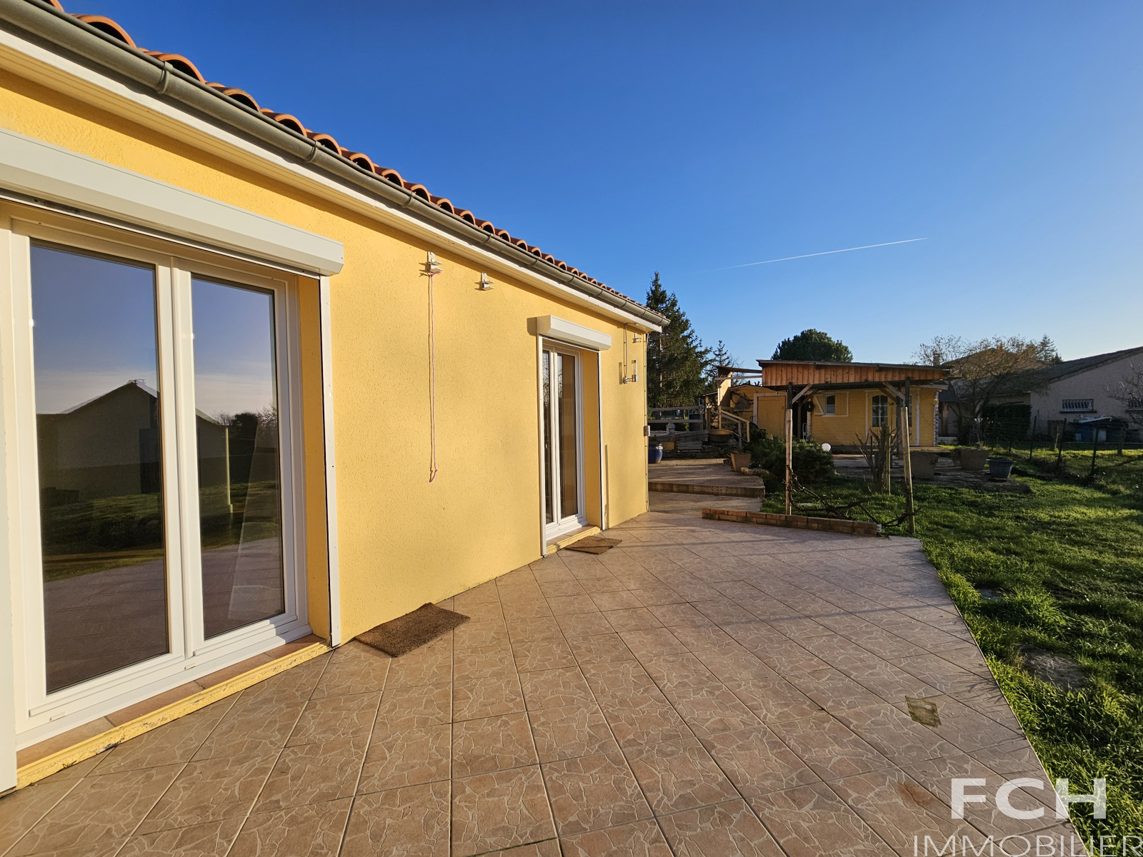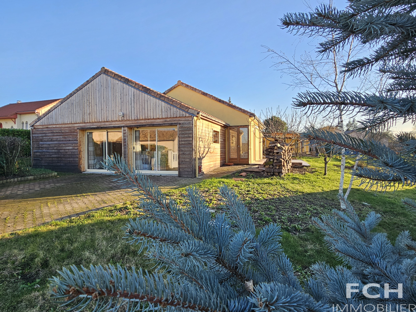 VENDU - Sur les hauteurs de Creuzier-le-Vieux, dans un quartier résidentiel calme avec vue dégagée, découvrez en EXCLUSIVITE cette agréable maison de plain-pied prête à vous accueillir. Exposée est-ouest, elle comprend : entrée avec vestiaire, séjour-salle à manger lumineux de 37 m² avec poêle à bois et sortie en terrasse, cuisine SCHMIDT avec accès à une deuxième terrasse. Un couloir (2 marches) dessert trois chambres, salle de bains, WC séparé avec lave-mains. Buanderie, cellier. Une pièce de 25 m² (bureau/salle de jeux...) peut aisément redevenir le garage double d'origine si besoin (sa surface n'est pas comprise dans les 110 m² habitables annoncés). Pièce de rangement dans les combles. Terrain clos de 753 m² avec abris jardin. Excellent DPE (C) : double vitrage 2015, chaudière VIESSMANN 2021, poêle à bois, isolation toiture récente.