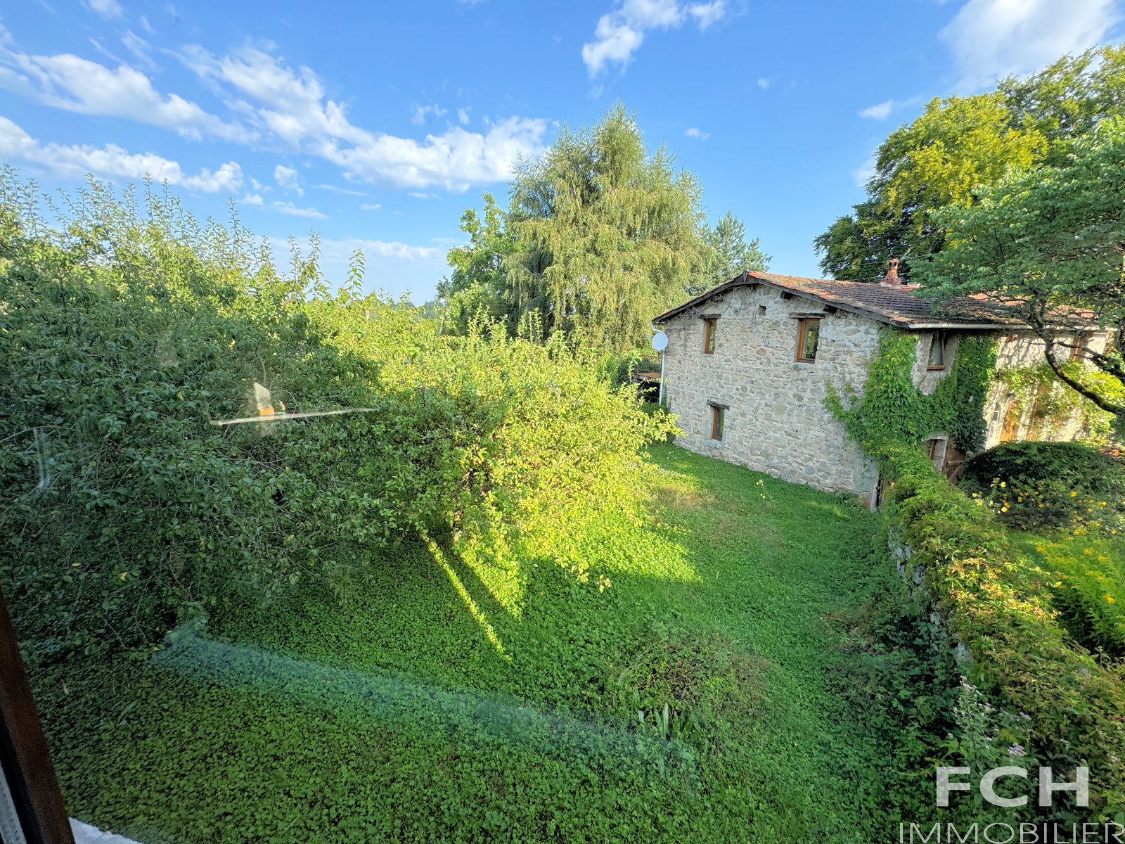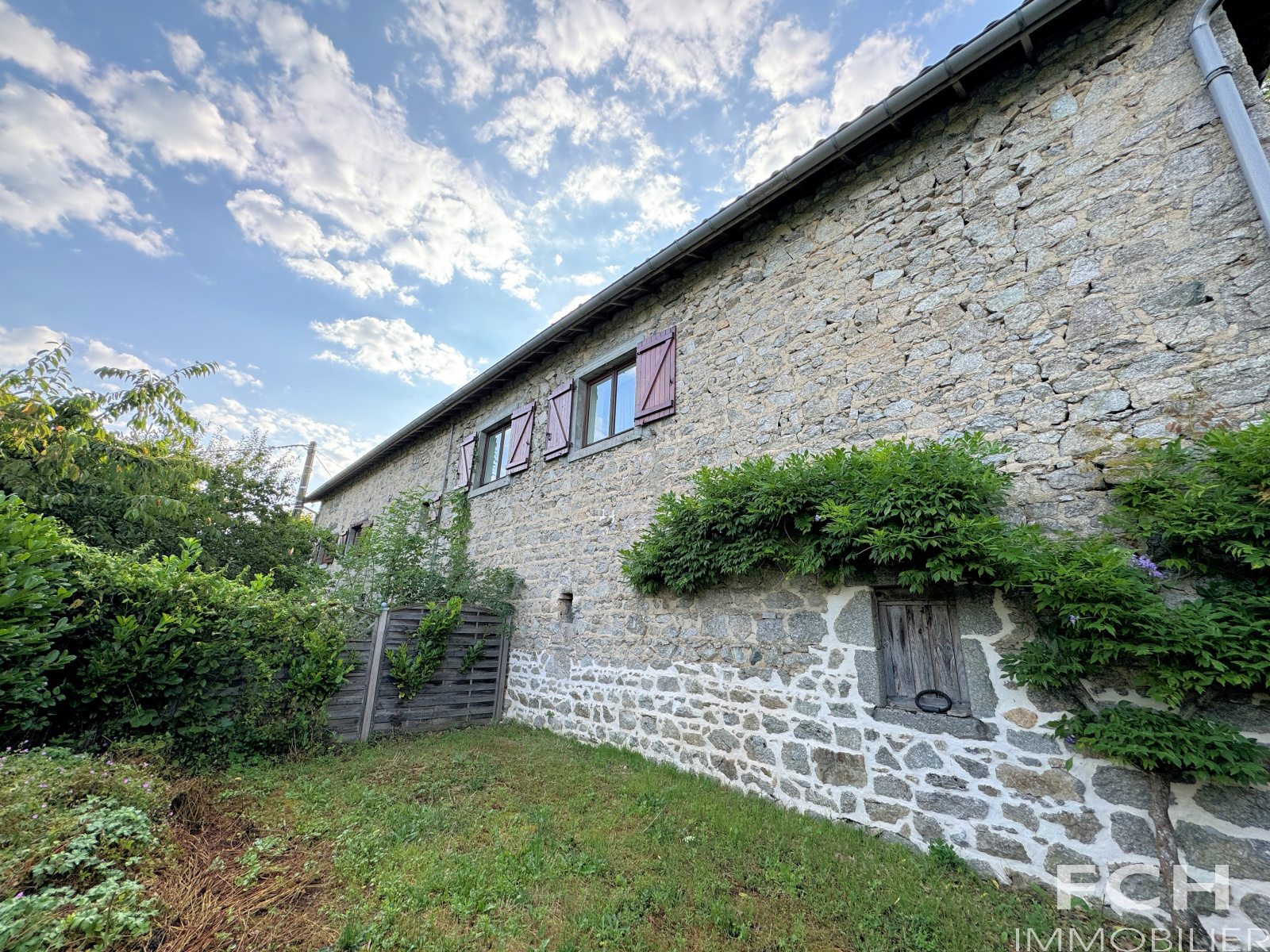 Sur un terrain de 1745 m², cette ancienne grange en pierre restaurée en maison d'habitation comprend au rez-de-chaussée : pièce à vivre de 58 m² avec séjour, cuisine équipée ouverte, poêle à bois, belles poutres et sortie jardin. Un couloir dessert WC, salle d'eau, trois chambres avec placard dont une avec salle d'eau privative-WC.