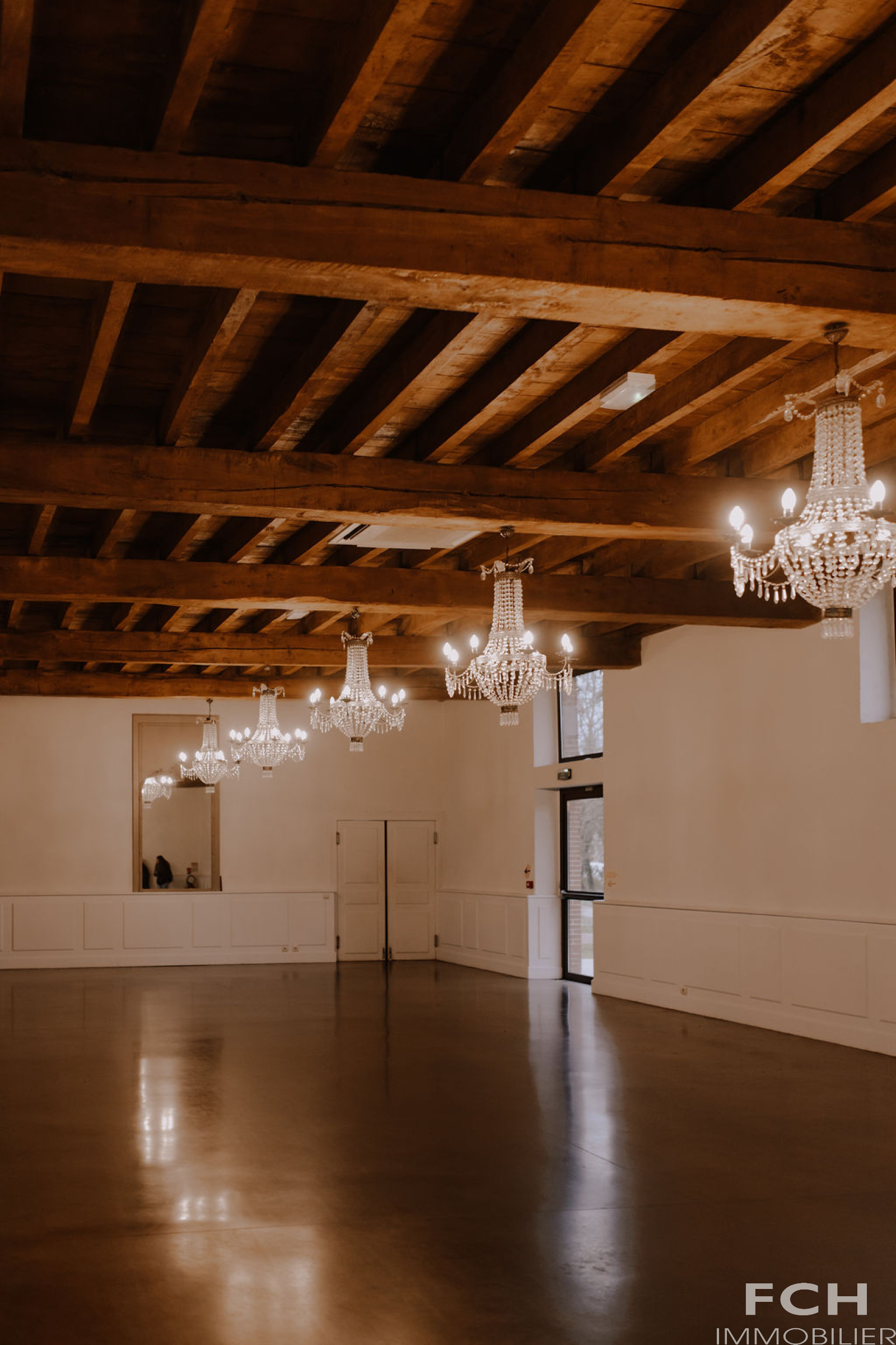 Une grande dépendance permet l’organisation de mariages, réceptions et événements privés, faisant du château une adresse recherchée pour ce type de prestations. Cet ensemble confère à la propriété un fort potentiel de développement ou la poursuite d’une activité clé en main.