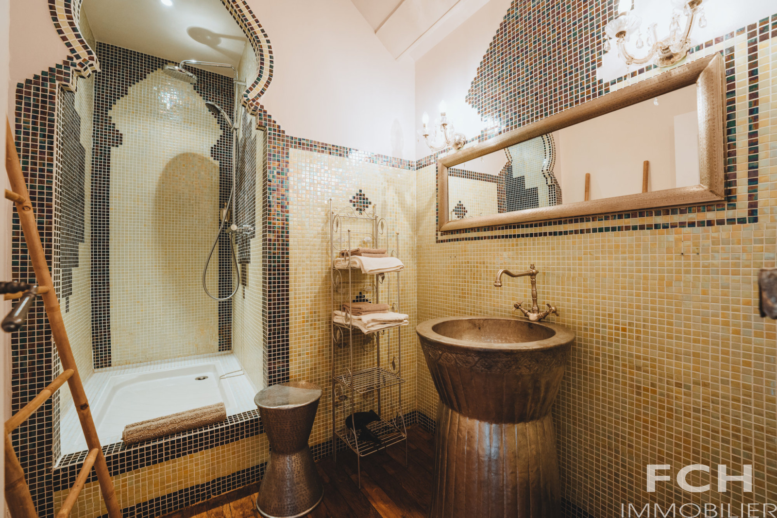 Magnifique hall d’entrée avec escalier imposant et majestueux, salon d’honneur lumineux de 58 m² avec trois baies vitrées, parquet remarquable et cheminée en marbre, salle à manger de 45 m² avec plafond à la française, cuisine familiale équipée de 35 m² et bureau.